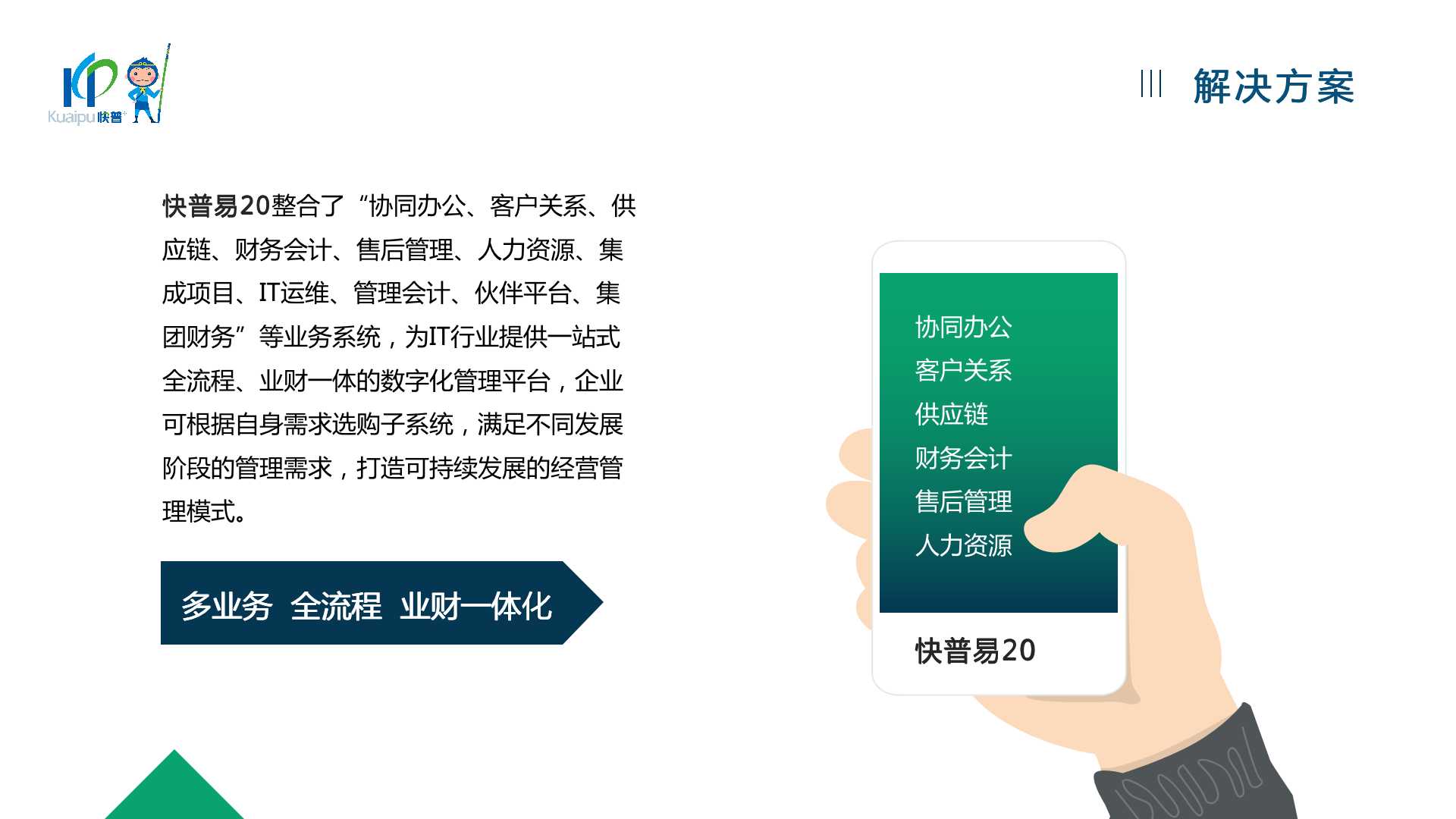 快普易20(IT行業(yè)版)為IT行業(yè)提供一站式、全流程、業(yè)財一體的數(shù)字化管理平臺,解決企業(yè)的資金、客戶、銷售、服務(wù)等管理難題,通過數(shù)字化轉(zhuǎn)型提升盈利能力!