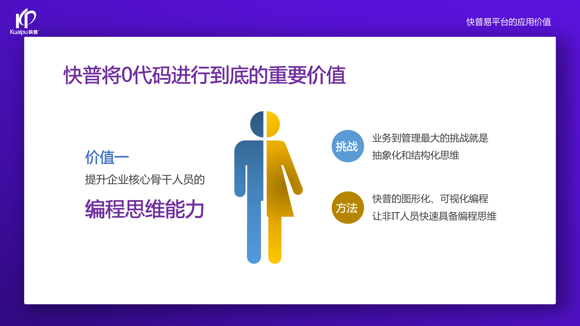過去企業(yè)用的ERP系統(tǒng),都不能完全理解、看透它的邏輯。因為不了解邏輯,就看不透,就用不好系統(tǒng)??炱战洑v了大量的客戶,發(fā)現(xiàn)如果用戶理解系統(tǒng)邏輯,會用得更好,提的需求也更合理、更結構化。但過去確實沒辦法讓所有普通用戶看懂源代碼。