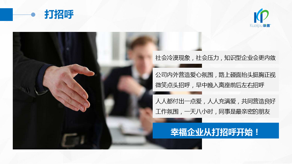 2018年9月,快普董事長(zhǎng)溫祝平先生發(fā)表《快普經(jīng)營(yíng)哲學(xué)2.0》,指出“以人為本、經(jīng)營(yíng)人心”的經(jīng)營(yíng)理念,強(qiáng)調(diào)進(jìn)一步建設(shè)“幸福企業(yè)文化”的重要性。